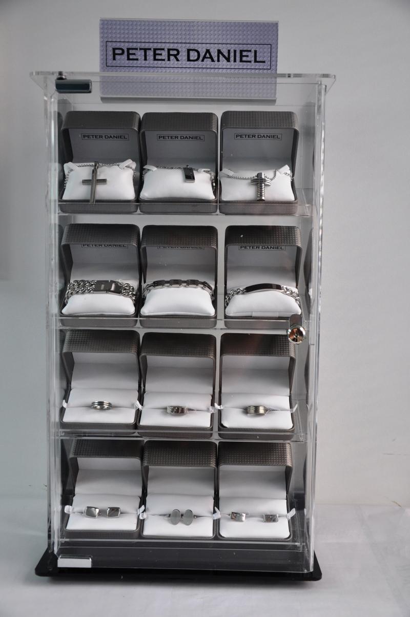 Peter Daniel: This is a stainless steel and Titanium men's line and Titanium and gold line carefully selected for the male intelect. This line includes cufflinks, pendants, rings and bracelets. Included with the product is a handsome taupe color gift box.